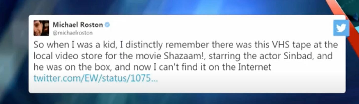 One such example that I am having a hard time grasping, is my clear recollection of a 1990s movie starring Comedian Sinbad called “Shazaam”.